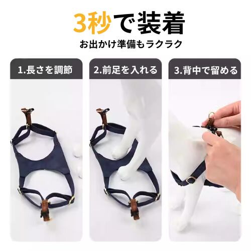 お散歩前にじっとしていられない元気な子でも、あっという間に準備ができます。