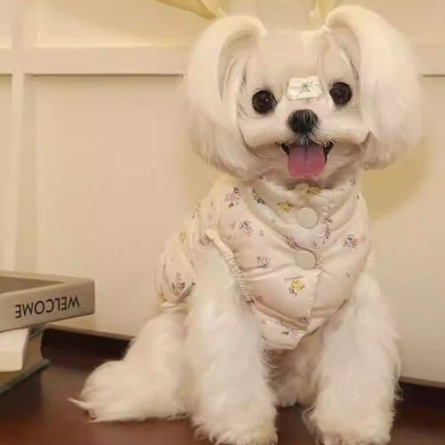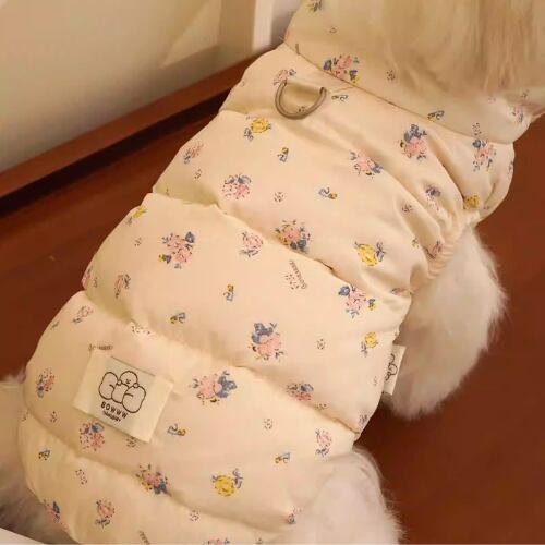 犬服 ホワイトダックダウン ダウン 小花柄 ベスト 撥水 Dカン付き 軽量 暖かい 上品 花柄