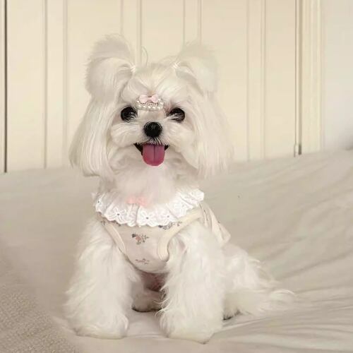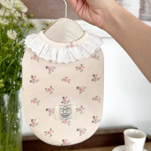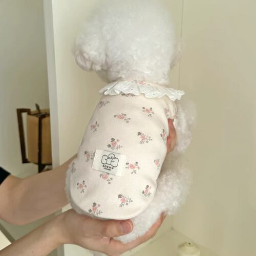 犬服 綿 100% ベビー綿 小花柄 キャミソール 柔らか 伸縮性 レース 部屋着 コットン オーガニックコットン